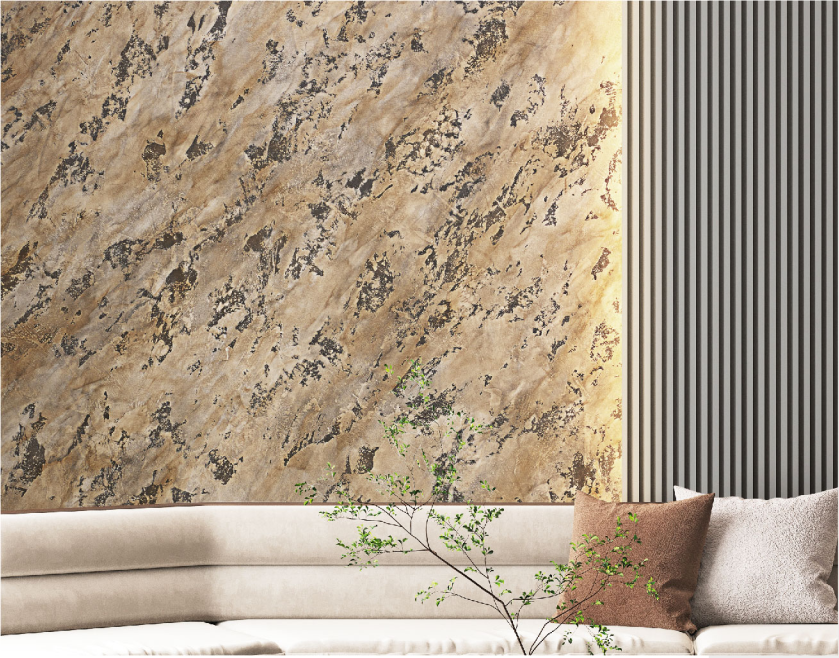 Antico is a decorative finish with stone and ancient patina effect. It has been reimagined in a multi-tone effect for the LUXE Collection to reflect rich tones with a classy tactile finish. It is perfectly suited to opulent interiors with its pleasant chromatic effects.